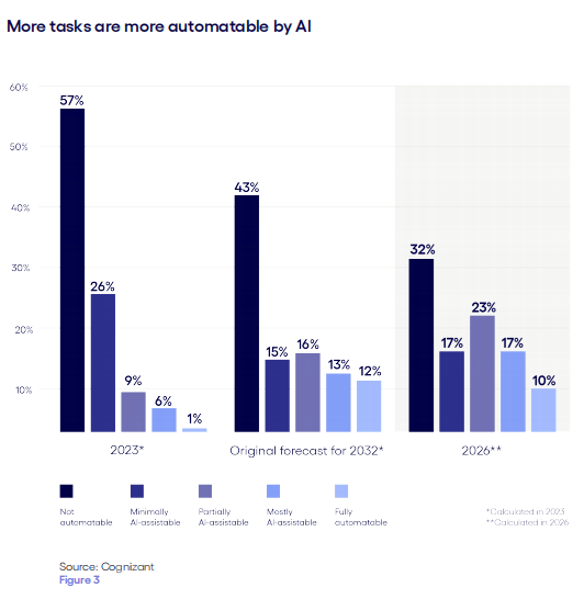已经被当成是是Ai的避风港,成果显示,快要40%的使命目前处于“部门可辅帮”或者“大部门可辅帮”的形态,CEO的AI度从预测的25%跃升至60%之上,这表白AI替代并非是那种简单的“一刀切”体例,估计2026年,办理者、金融阐发师、律师这般保守“金领”也面对“存正在级”,这也就意味着!